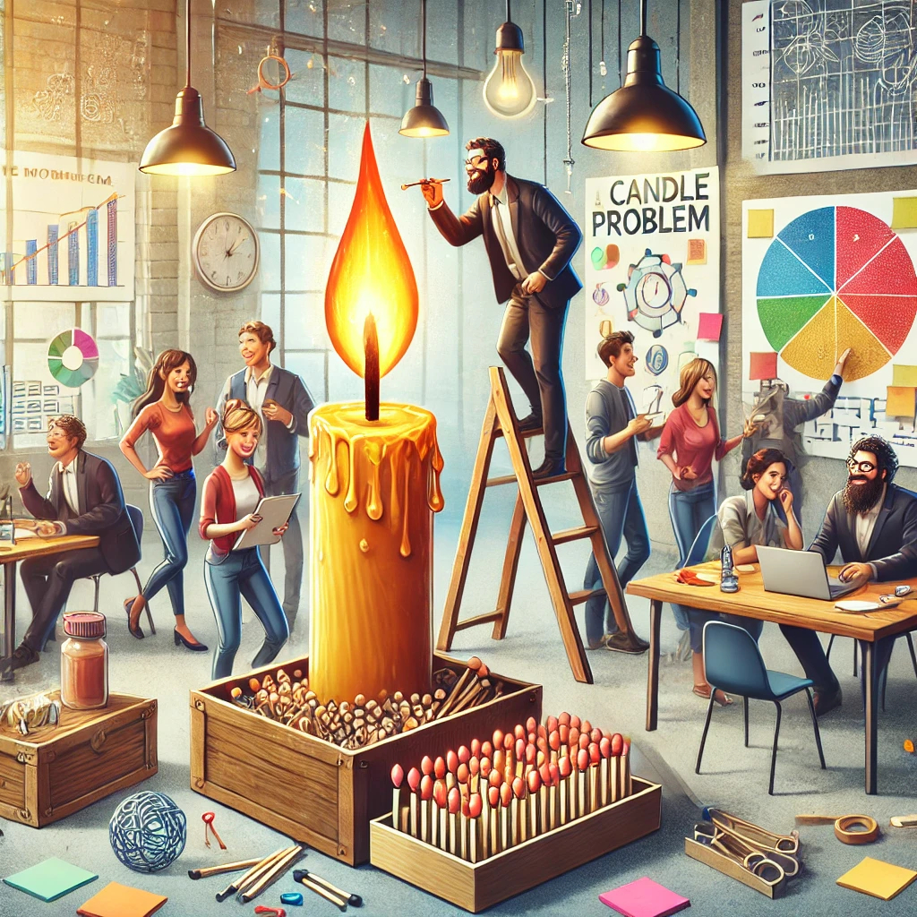 De opdracht lijkt simpel: zorg ervoor dat een kaars aan de muur hangt, zonder dat er kaarsvet op de tafel drupt. De oplossing? Een flinke dosis creativiteit.